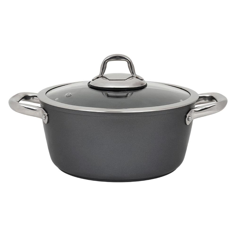 Leggno Master Titanyum Tencere 20 cm Gri, kompakt yapısıyla mutfakta pratiklik arayanlar için ideal bir seçenektir. Titanyum kaplamalı yüzeyi sayesinde çizilmelere karşı dayanıklıdır ve ısıyı eşit dağıtarak yemeklerin homojen şekilde pişmesini sağlar.
