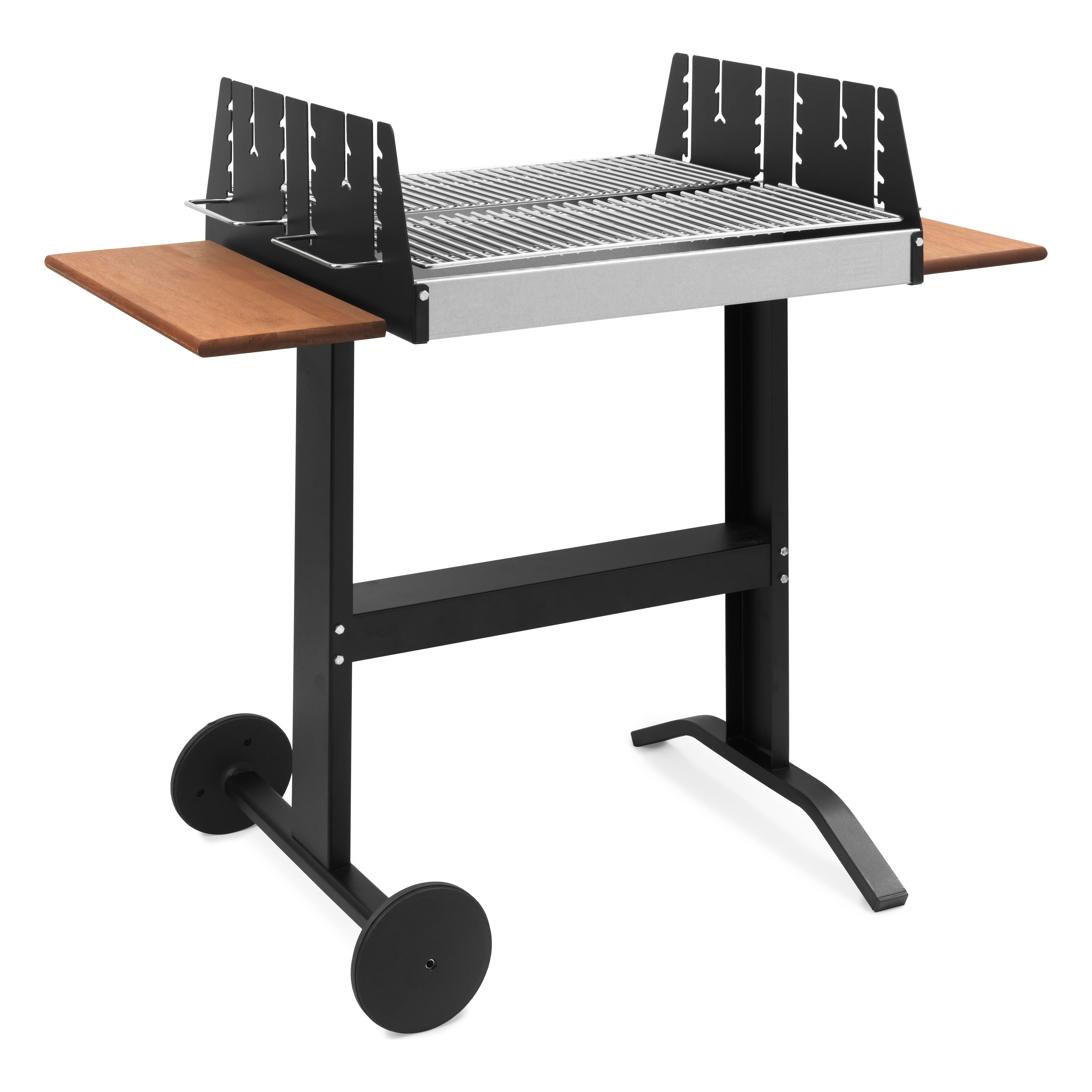 İki FSC sertifikalı ahşap sehpa, barbekü aksesuarlarınızı ve yiyeceklerinizi koyacak bir yere ihtiyacınız olduğunda çok kullanışlıdır. Izgara, güçlü ve dayanıklı paslanmaz çelikten yapılmıştır.