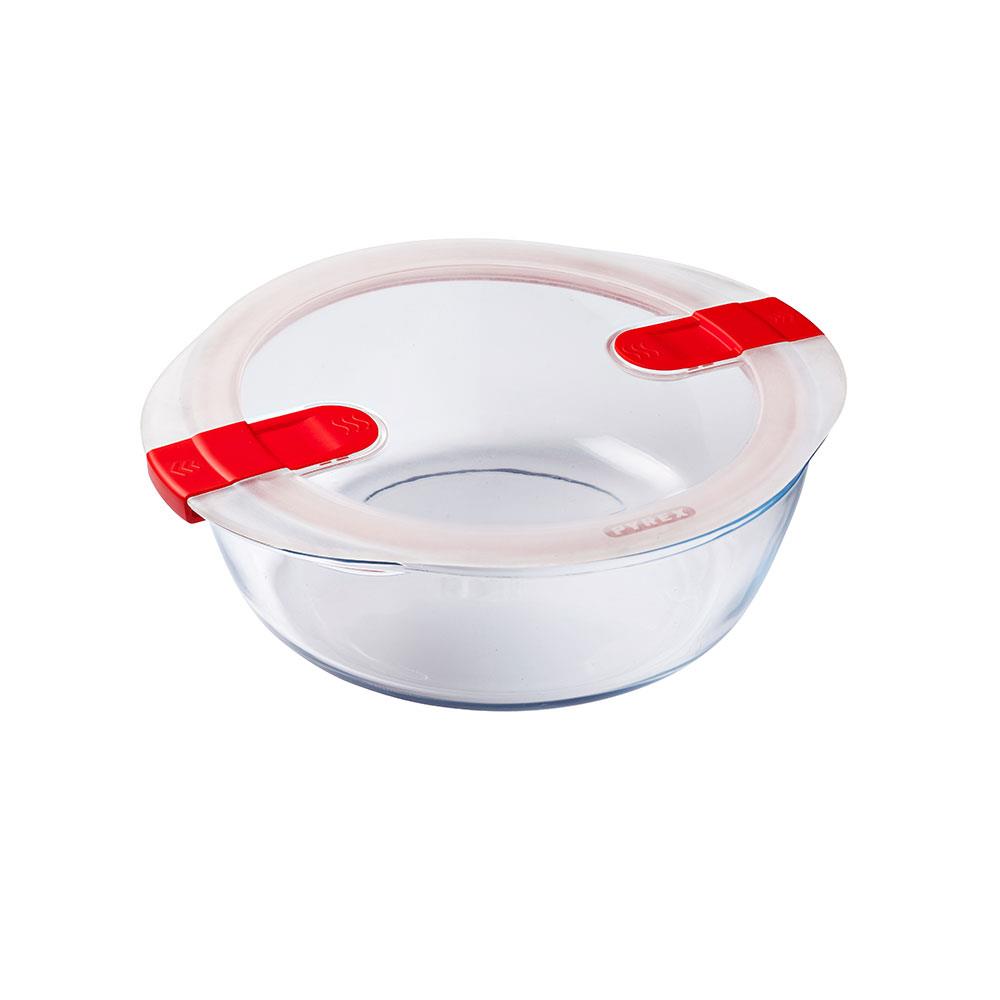 Pyrex'in bu Cook & Heat saklama kabı uzmanlığı konusunda gerçek bir şampiyon. Kapak mikrodalga korumalıdır, sıçramasız ısıtma ve pişirme için buhar delikleri içerir. Silikon bir conta, kabı hava geçirmez ve sızdırmaz hale getirir. Yiyecekleri buzdolabında veya dondurucuda saklamak için mükemmeldir. Ek olarak, kase fırın için de uygundur, bunun için kapağın çıkarılması gerekir. Yiyecek kabı borosilikat camdan yapılmıştır.